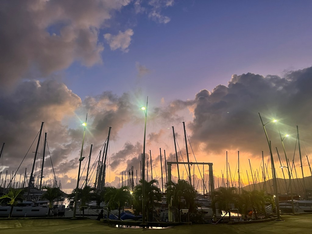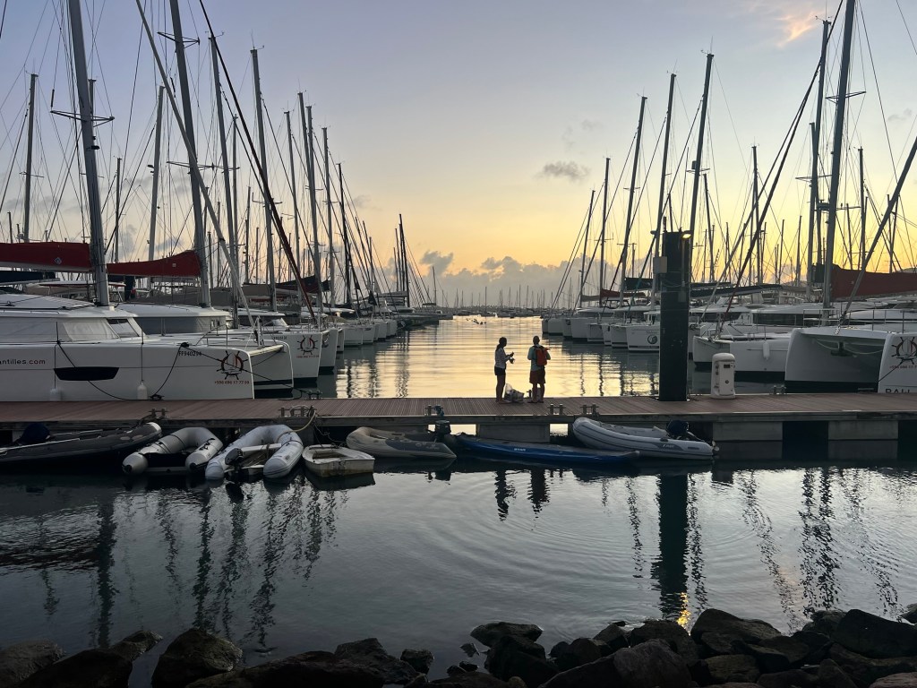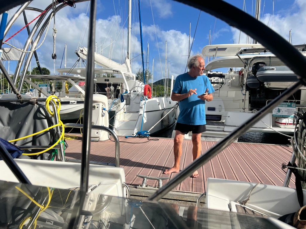 Quelques jours passés au ponton de la marina du Marin pour réparer, reprendre des forces, trouver une ancre et faire des virées à terre. Pas mal de gros catamarans attendant le client ne créent pas une ambiance des plus conviviales mais quelques rencontres d’équipages transat vus avant de traverser sont le lieu d’échanges d expériences. Chacun s accorde à dire que cette année, la transat est particulièrement compliquée.