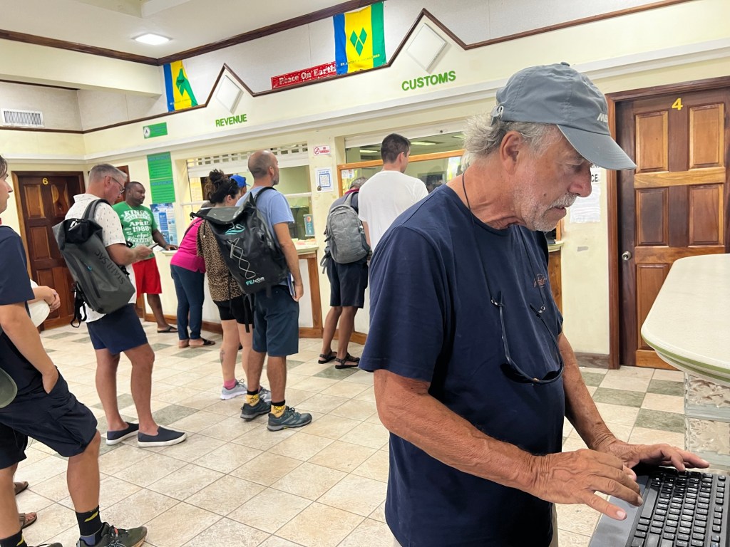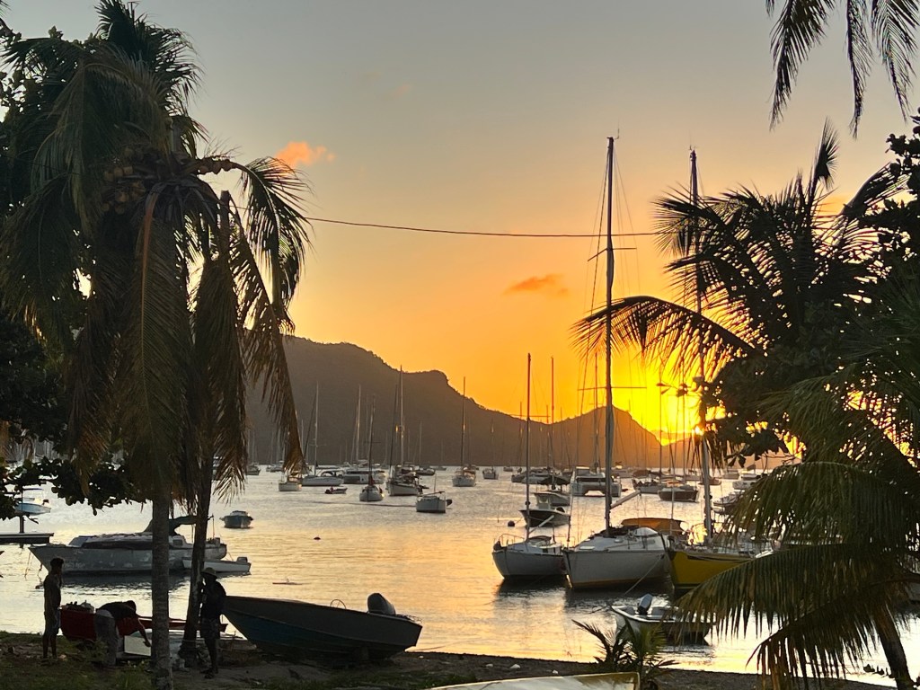 À l arrivée à Bequia, sur l’île de St Vincent & Les Grenadines, belle surprise de trouver des bouées d’amarrage dans la baie – ok, le prix doit être fermement discuté – et quelques services proposés par des petits bateaux sillonnants le port : fuel, eau potable, taxi, langoustes ….